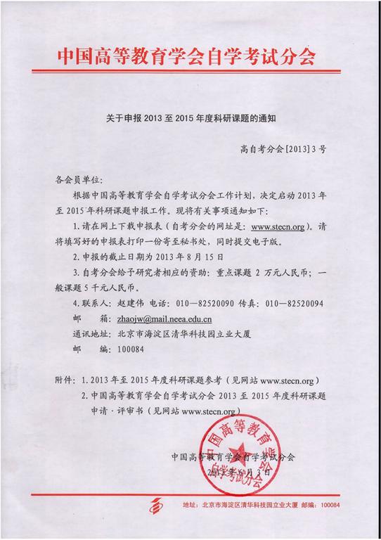 中国高等教育学会自学考试分会关于申报2013至2015年度科研课题的通知
